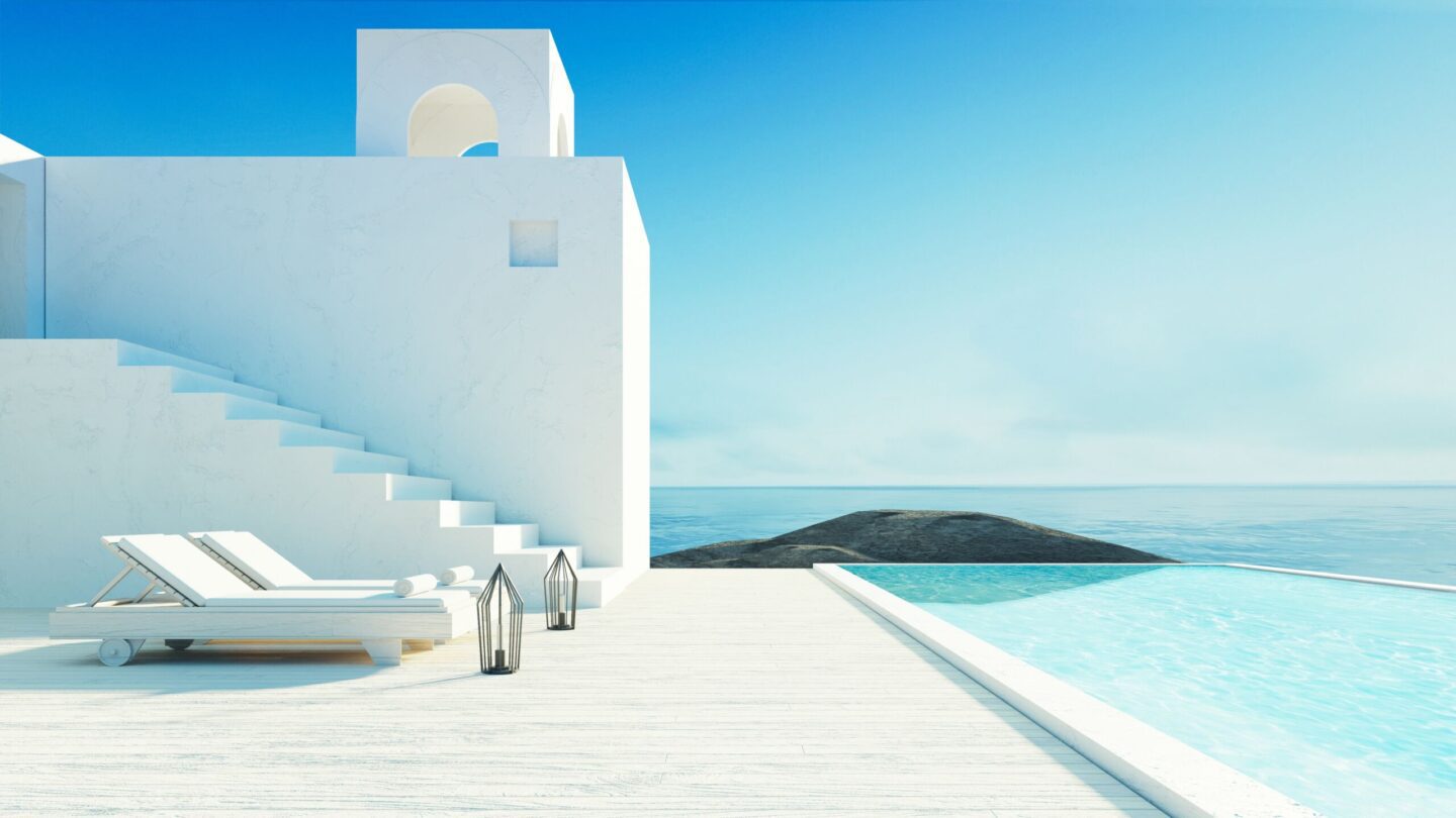 Το Caldera View Resort είναι χτισμένο σε κυκλαδίτικο στιλ με χρώματα που αντανακλούν το τοπίο της Σαντορίνης και του Αιγαίου.